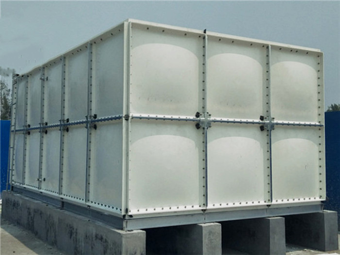 騰翔玻璃鋼水箱主體采用食品樹脂作為原材料,重量比不銹鋼板材重,采用螺栓與密封膠的方式進行組合裝配,不用焊接工藝;水箱裝配而成,作為側面承壓能力的關鍵所在,拉筋是不可少的。水箱底部設置鍍鋅槽鋼。水箱附件有檢查孔、表里扶梯、工藝管口、材料均為不銹鋼,水箱工藝管口按用戶供應的圖樣規劃。型板間設置水平加強板,加強材料同箱體材料。