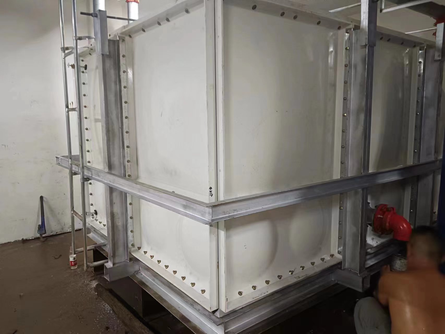 由于使用環(huán)境及使用介質所限,有些水箱內部盛有高濃度溶液,如:濃鹽水、海水等,對水箱內壁鋼板會有嚴重腐蝕,因此無法采用不銹鋼水箱或者鋼板水箱。正常玻璃鋼水箱板可以耐腐蝕,但是水箱內部又設有鋼制拉筋支撐等,故此也不適用以上介質使用。為了滿足特殊用戶的使用需求,經過承重及承壓測試后,這種無內件玻璃鋼水箱面世,它采用不同規(guī)格(1000*1000mm、1000*500mm、500*500mm)的玻璃鋼模壓板組裝,水箱內部沒有設任何鋼制配件,水箱外部及底部采用工字鋼加固,所有法蘭采用ABS材質俗稱塑料材質,外觀整潔無變形,內部無配件,易清洗、維護方便,延長了水箱的使用壽命,滿足特殊用戶的特殊需求。