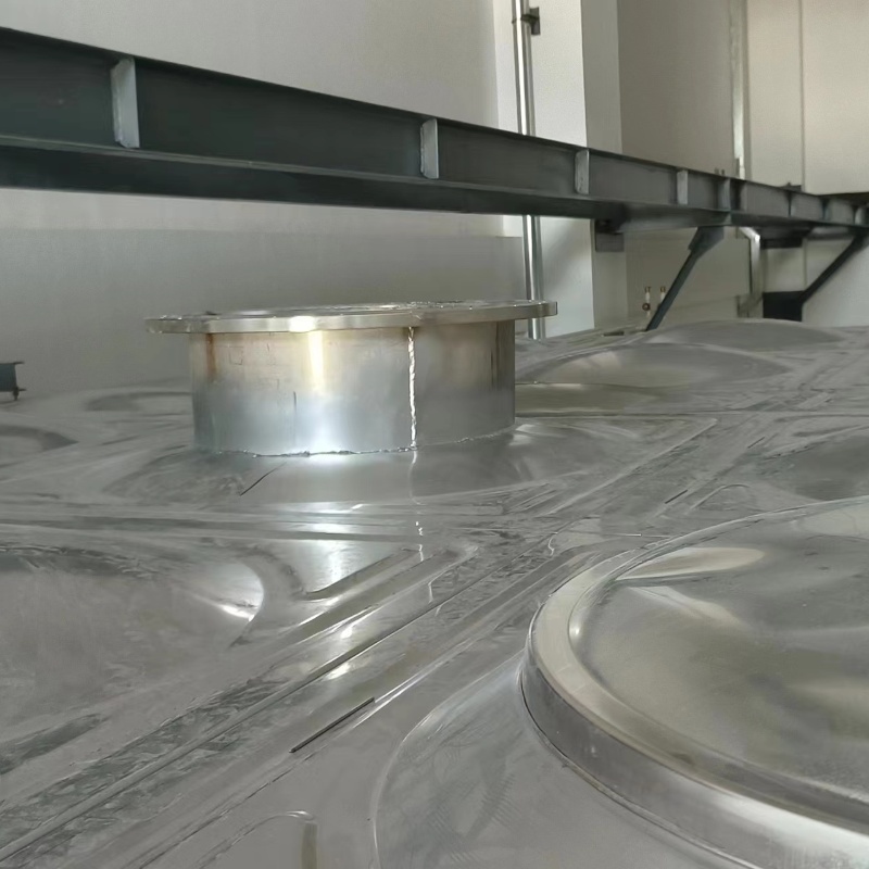 1.按照客戶提供的圖紙找出進(jìn)水、出水、溢流、排污、氣孔的開口位置,畫上印作為標(biāo)記,然后找準(zhǔn)法蘭的角度與水箱板之間的凸面位置,放準(zhǔn)為好,用鉛筆畫上印,在對準(zhǔn)法蘭的螺栓口進(jìn)行打孔.